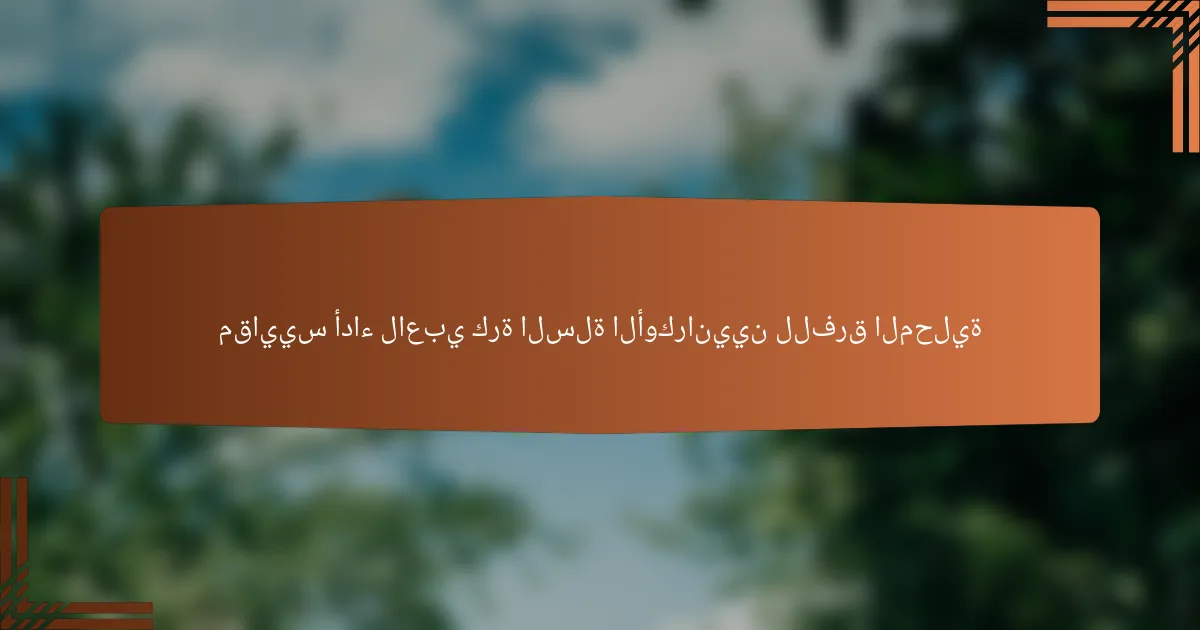 ما هي مقاييس الأداء الأكثر صلة بالفرق المحلية في أوكرانيا؟